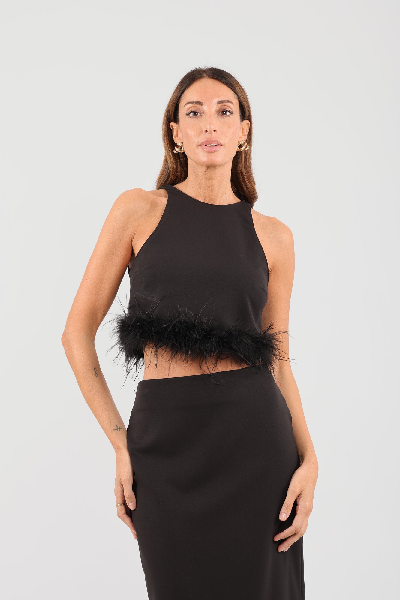 Top nero con piume - Haveone